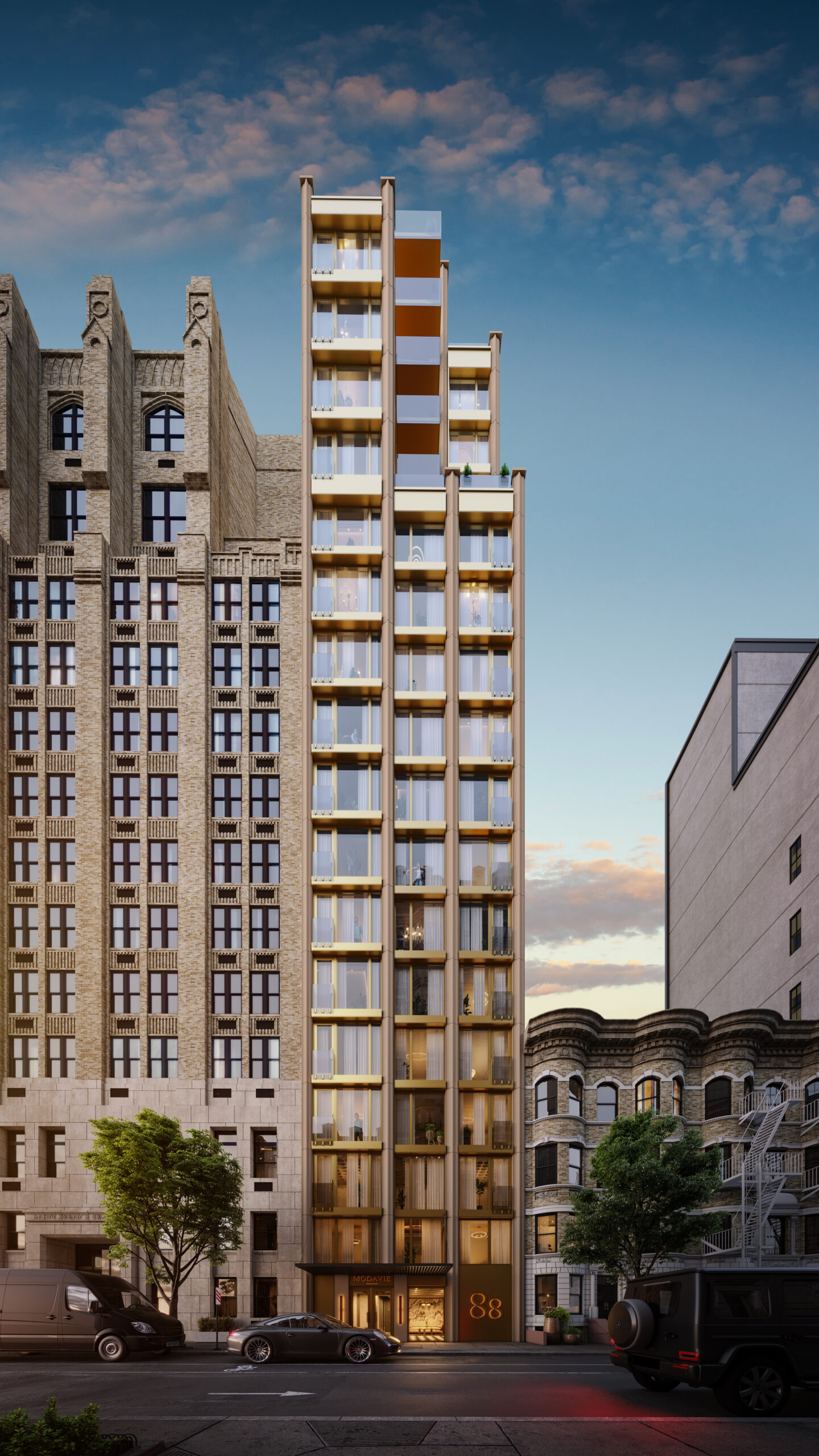 Modavie Residences at 88 Schermerhorn Street redefines Brooklyn Heights living with a bold yet refined architectural presence. A contemporary homage to Art Deco elegance, its striking façade is adorned with Epernay Champagne Metallic columns and bronze-framed windows, seamlessly blending classic grandeur with modern sophistication. Within, a curated selection of residences offers an intimate retreat, where meticulous craftsmanship and thoughtful design create an atmosphere of effortless luxury. Tucked into one of Brooklyn’s most coveted enclaves, Modavie is both a quiet sanctuary and an integral part of the neighborhood’s enduring legacy – a timeless address designed for those who appreciate beauty in the details.